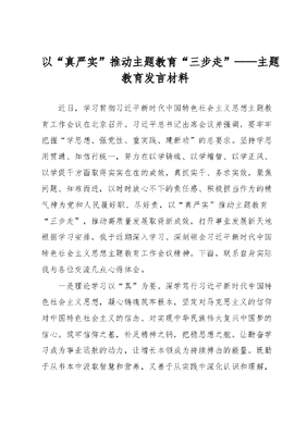 以“真严实”推动主题教育“三步走”——主题教育发言材料.doc