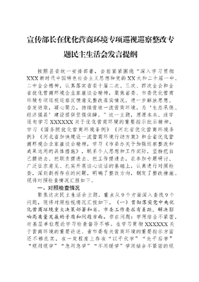 宣传部长在优化营商环境专项巡视巡察整改专题民主生活会发言提纲.docx