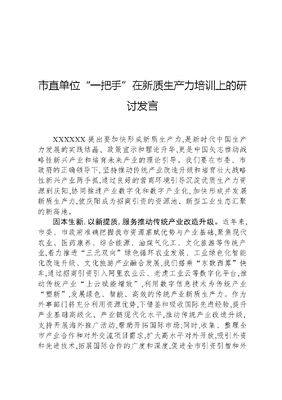 市直单位“一把手”在新质生产力培训上的研讨发言.docx