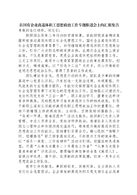 在国有企业离退休职工思想政治工作专题推进会上的汇报发言.docx