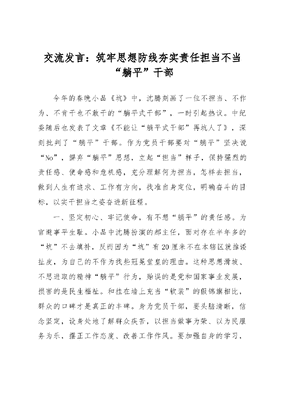 交流发言:筑牢思想防线夯实责任担当不当“躺平”干部.docx