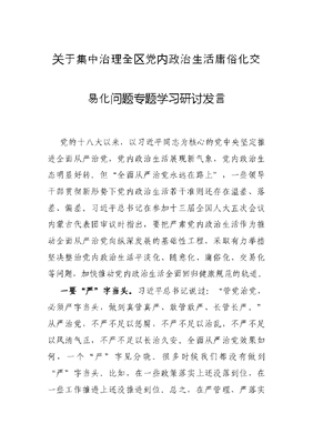 关于集中治理全区党内政治生活庸俗化交易化问题专题学习研讨发言.docx