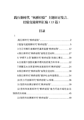 (13篇)践行新时代“枫桥经验”主题研讨发言、经验交流材料汇编.docx