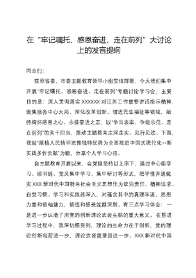 在“牢记嘱托、感恩奋进、走在前列”大讨论上的发言提纲.docx