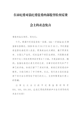 在市纪委对县纪委监委内部监督检查反馈会上的表态发言.docx