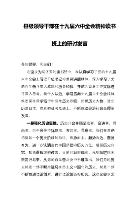 县级领导干部在十九届六中全会精神读书班上的研讨发言.docx