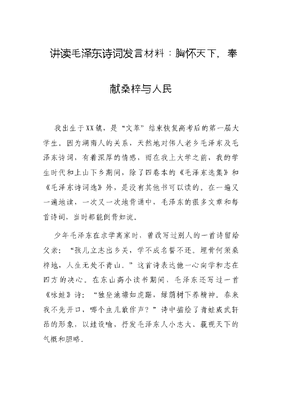 讲读毛泽东诗词发言材料:胸怀天下,奉献桑梓与人民.docx