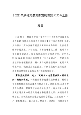 2022年乡村党总支部贯彻落实X文件汇报发言.docx