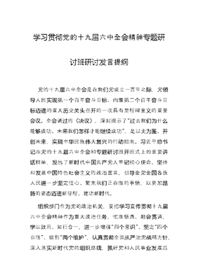 学习贯彻党的十九届六中全会精神专题研讨班研讨发言提纲.docx