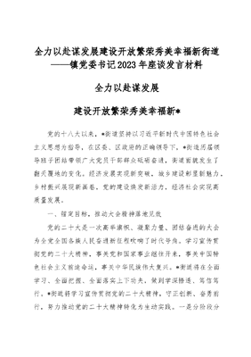 全力以赴谋发展 建设开放繁荣秀美幸福新街道————镇党委书记2023年座谈发言材料.docx