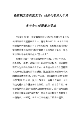 检察院工作交流发言:拢好心 管好人 干好事 努力打好脱薄攻坚战.docx