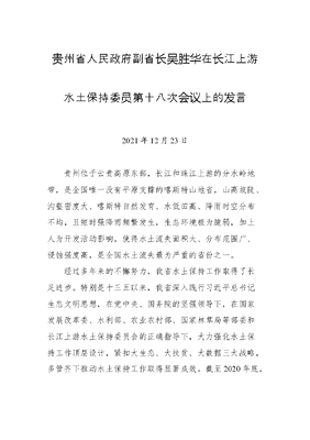 贵州省人民政府副省长吴胜华在长江上游水土保持委员第十八次会议上的发言.docx
