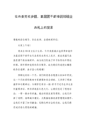 在市委党校乡镇、基层团干部培训班结业典礼上的发言.docx