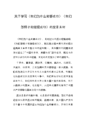 关于学习《我们为什么能够成功》《我们怎样才能继续成功》的发言素材.docx