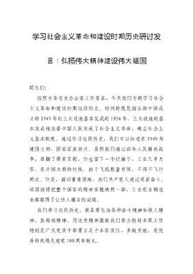 学习社会主义革命和建设时期历史研讨发言:弘扬伟大精神 建设伟大祖国.docx