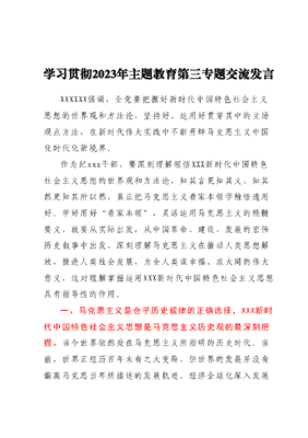 学习贯彻2023年主题教育第三专题交流发言.docx