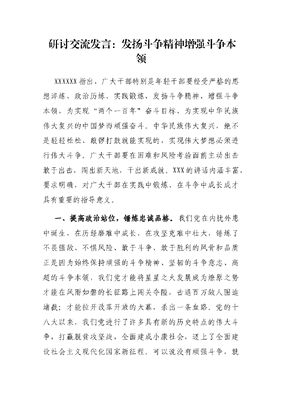 研讨交流发言:发扬斗争精神 增强斗争本领.docx