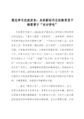 理论学习交流发言:走好新时代长征路 党员干部要勇于“自讨苦吃”.docx