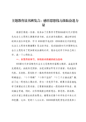 主题教育读书班发言:感悟思想伟力 汲取奋进力量.docx