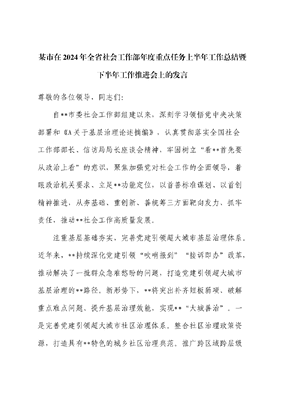 市在2024年全省社会工作部年度重点任务上半年工作总结暨下半年工作推进会上的发言.docx