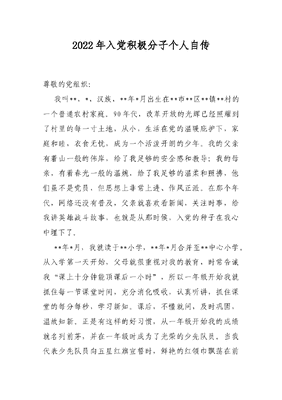 2022年入党积极分子个人自传.docx