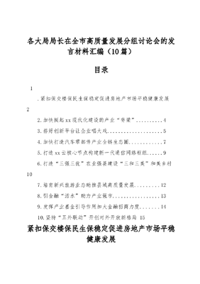 (10篇)各大局局长在全市高质量发展分组讨论会的发言材料汇编.docx