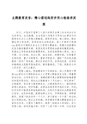 主题教育发言:精心谋划起好步 用心检验求实效.docx