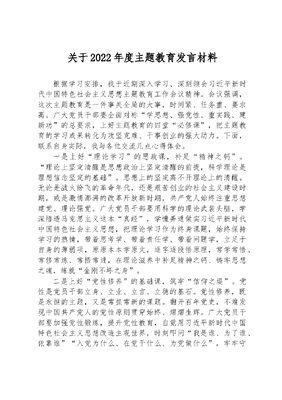 关于2022年度主题教育发言材料.docx