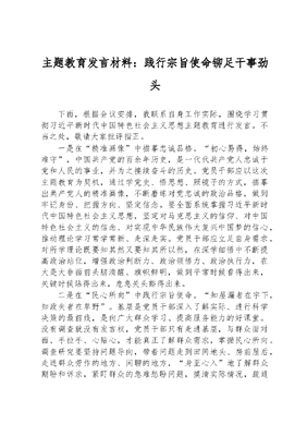 主题教育发言材料:践行宗旨使命 铆足干事劲头.docx