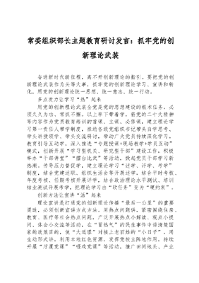 常委组织部长主题教育研讨发言:抓牢党的创新理论武装.docx