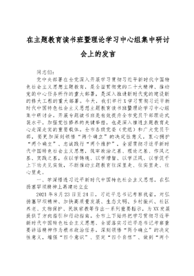 在主题教育读书班暨理论学习中心组集中研讨会上的发言.docx
