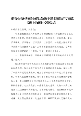 市农业农村局在全市县处级干部主题教育专题读书班上的研讨交流发言.docx