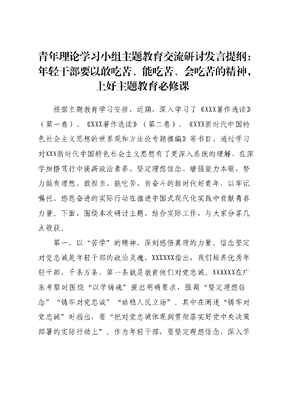 青年理论学习小组主题教育交流研讨发言提纲:年轻干部要以敢吃苦、能吃苦、会吃苦的精神,上好主题教育必修课.docx