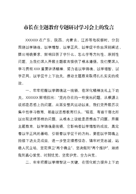 市长在主题教育专题研讨学习会上的发言.docx