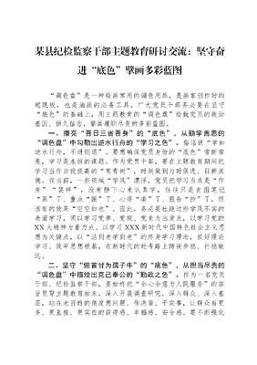 某县纪检监察干部主题教育研讨交流:坚守奋进“底色”,擘画多彩蓝图.docx