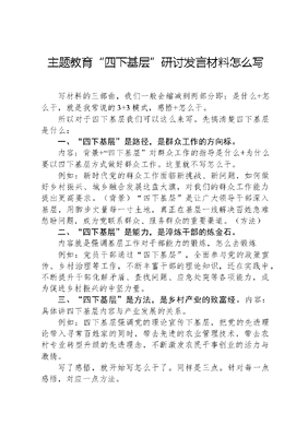 主题教育“四下基层”研讨发言材料怎么写.docx