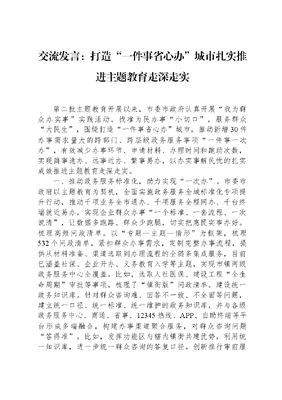 交流发言:打造“一件事省心办”城市扎实推进主题教育走深走实.docx