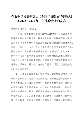 在市委党校贯彻落实《全国干部教育培训规划(2023—2027年)》座谈会上的发言.docx