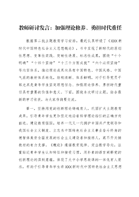 教师研讨发言:加强理论修养、勇担时代重任.docx
