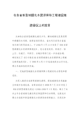 在全省新型城镇化水资源保障工程建设推进会议上的发言.docx