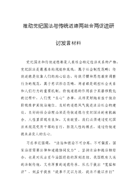 推动党纪国法与传统道德两融合两促进研讨发言材料.docx