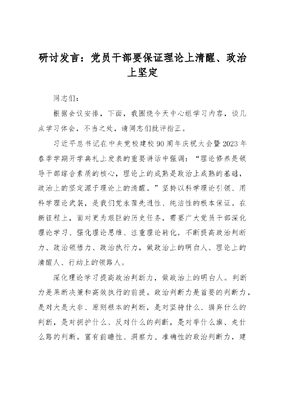 研讨发言:党员干部要保证理论上清醒、政治上坚定(1).docx