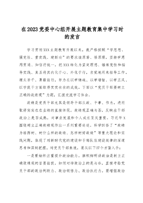 在2023党委中心组开展主题教育集中学习时的发言.docx
