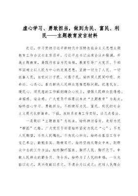 虚心学习、勇敢担当,做到为民、富民、利民——主题教育发言材料.docx
