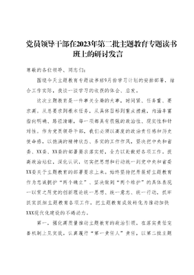 党员领导干部在2023年第二批主题教育专题读书班上的研讨发言.docx