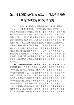 第二批主题教育研讨交流发言:以高质量调查研究推动主题教育走深走实.docx