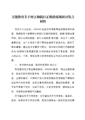 主题教育关于树立和践行正确政绩观研讨发言材料.docx