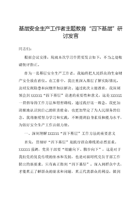 基层安全生产工作者主题教育“四下基层”研讨发言.docx