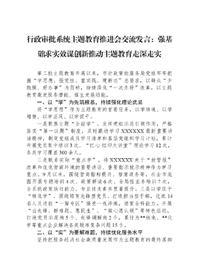 行政审批系统主题教育推进会交流发言:强基础求实效谋创新推动主题教育走深走实.docx