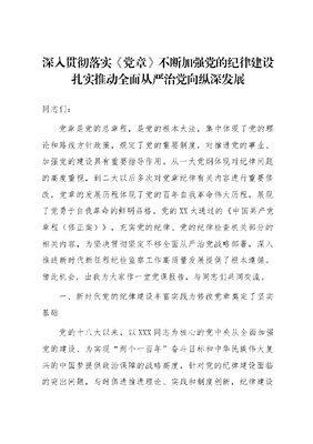深入贯彻落实《党章》 不断加强党的纪律建设 扎实推动全面从严治党向纵深发展.docx